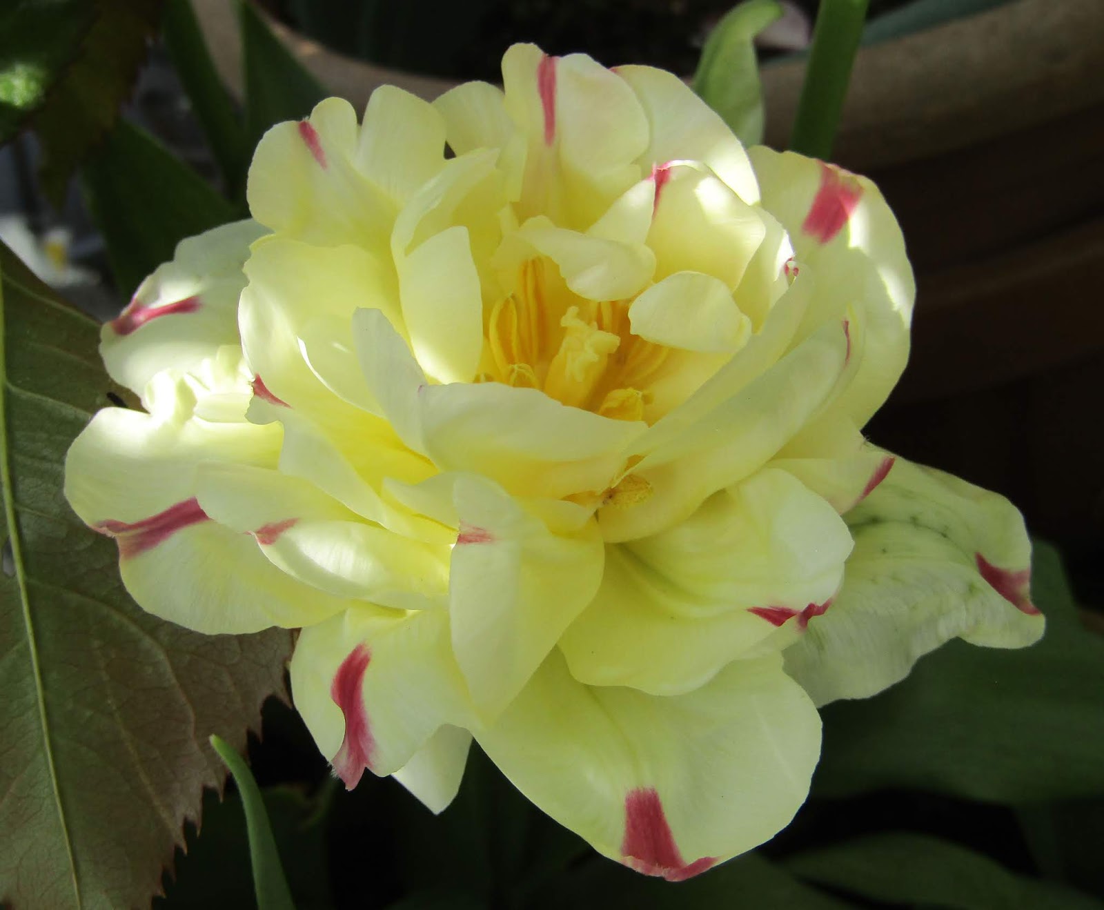 Oh how I wish you lived nearby, my yard could sure your attention. Your flowers are all fabulous. The dancer tulips are very interesting, never saw any like that. Take care of your shoulder.